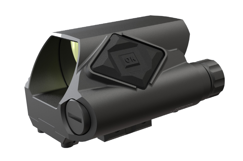 MeoDot DF D is unique aiming system allowing the use of several aiming marks with electronics ballistics and rectification settings for a specific weapon system and caliber. Reflex sight is designed for fast and accurate aiming of weapon systems as assault rifle (AR), sumbmachine guns (SMG) or light machine guns (LMG). With the magnifier module or attached night vision device allows accurate shooting at short and medium distances day and night in semi-automatic or full-auto firing mode. Device is equipped with dual battery case.