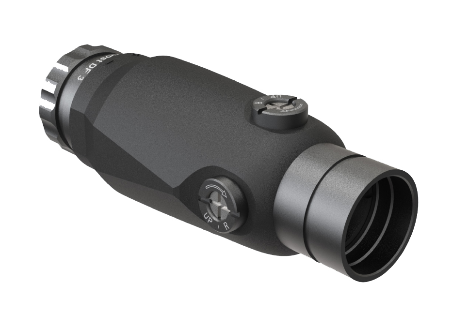 The magnifying module with flip mount is ideal solution for weapon systems with red dot sights (AR, SMG, LMG). Allows precise aiming at medium distances and after unfolding also the possibility of direct shooting at short distances (CQB). It can be used also as a monocular spotting system with three times magnification. Magnifier is equipped with rectifiers to set the aiming point to the central possition.