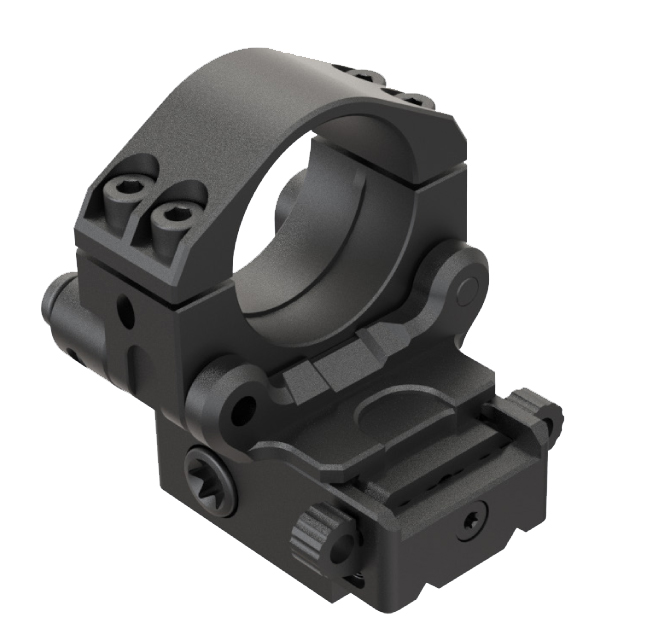 Flip to side mount with base for quick release with the possibility of quick exchange for night vision clip on device. The entire surface is consistently antireflective. Steel components are treated with special anticorrosive surface.