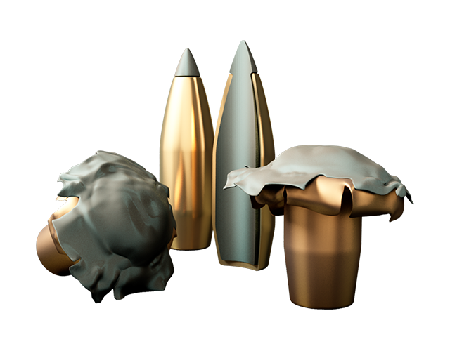 SBT GameKing® – Spitzer Boat Tail bullets are designed for hunting at long range, where their extra margin of performance can make the critical difference. GameKing® bullets feature a boat tail design to bring hunters the ballistic advantage of match bullets. The streamlined tapered base of the boat tail bullet greatly reduces drag, which results in higher retained velocity, greater striking energy, a flatter trajectory and less wind drift than comparable flat base bullets.