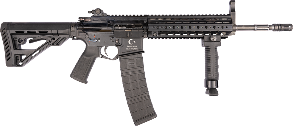 BRG55 5.56×45 mm calibre assault rifle, one of the latest technology products of BRG Defence, is one of the most important parts of domestic and national production with its high level of robustness. BRG55, which is one step ahead of its competitors through its short stroke gas piston drive system, has been designed for the purposes of the toughest combat conditions. Through the use of reinforced aluminium and polymer as well as high quality steel, BRG55 is lighter than its counterparts and provides more manoeuvrability to the operator in different conditions from close to long ranges. BRG55 is an assault rifle designed considering the comfort of the operators with its indicator magazine and adjustable buttstock and suitable for tactical use with its foldable iron sights.